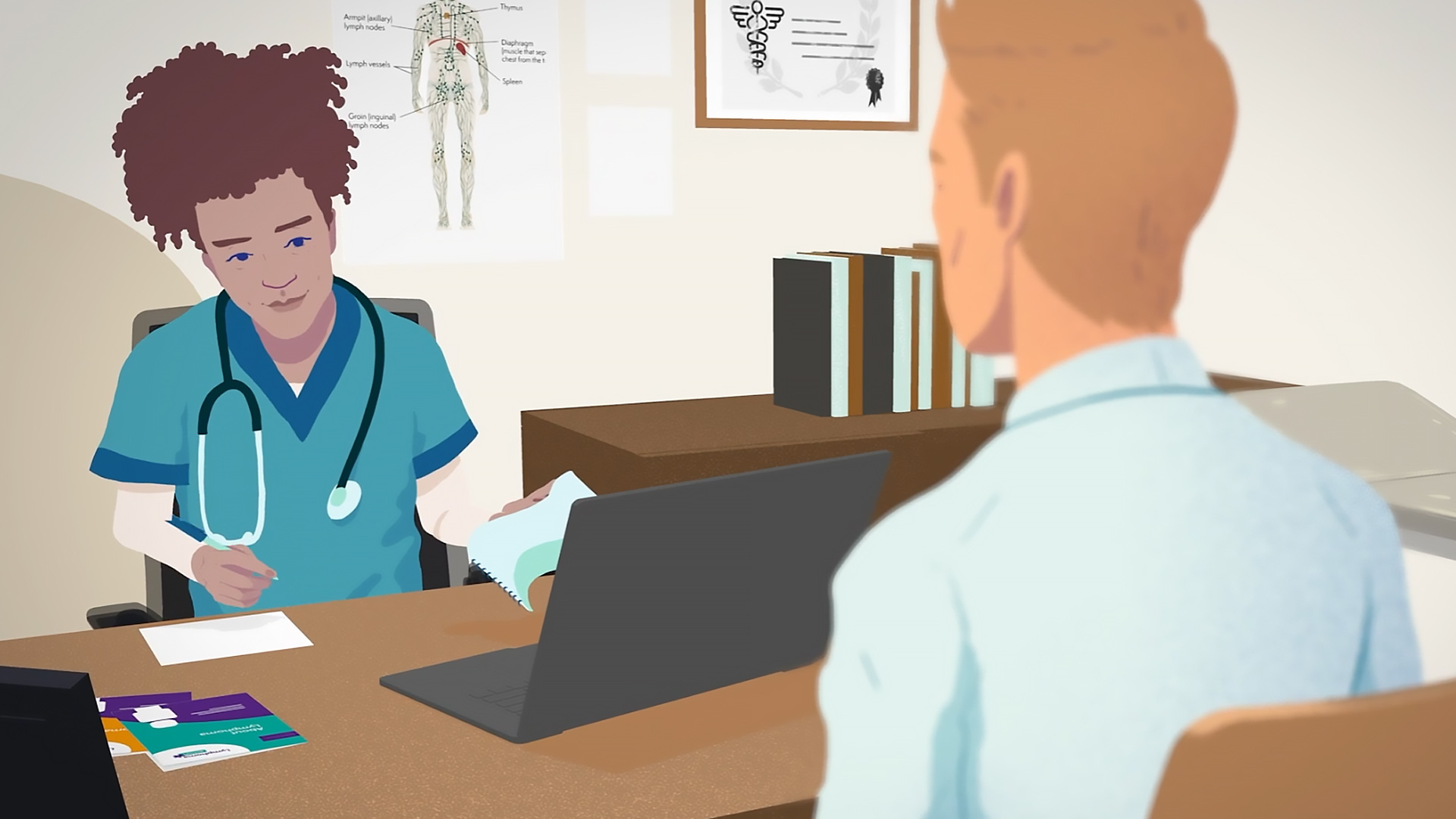 For Lymphoma Action, we blended carefully designed 2D characters with detailed 3D environments to create a sense of depth and movement. The characters are thoughtfully proportioned, not cartoonish or overly stylized—helping to maintain a genuine, relatable tone throughout the films.
